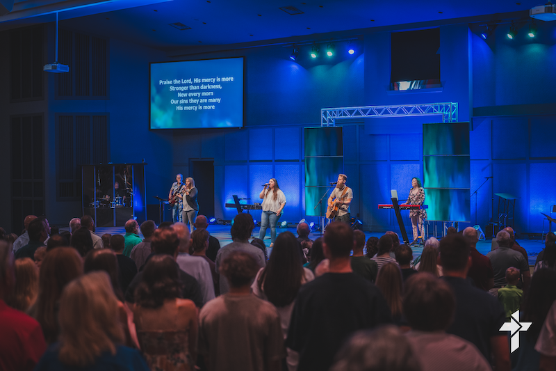 On Sundays we gather for worship at 9:30am and 11:00am in the auditorium located on the upper level of the main building. To easily find the auditorium, drive past the large building and park in the second parking lot (the upper parking lot) and enter through the main doors at the breezeway. Plan to arrive 10-15 minutes before we begin to give you time to find your way around and get a seat.